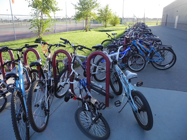 - School bike racks are full or overflowing (see photo below from Idaho middle school).