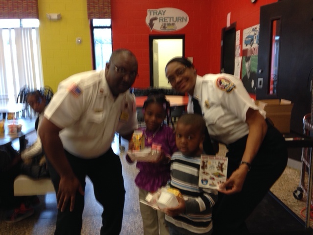 THE REAL NO-NOS: We really wanted to this photo to work because it showed local firefighters having breakfast with students during National School Breakfast Week – but we could not use it. Never, never post photos that are too dark and out of focus (stay tuned because we cover these topics next!)