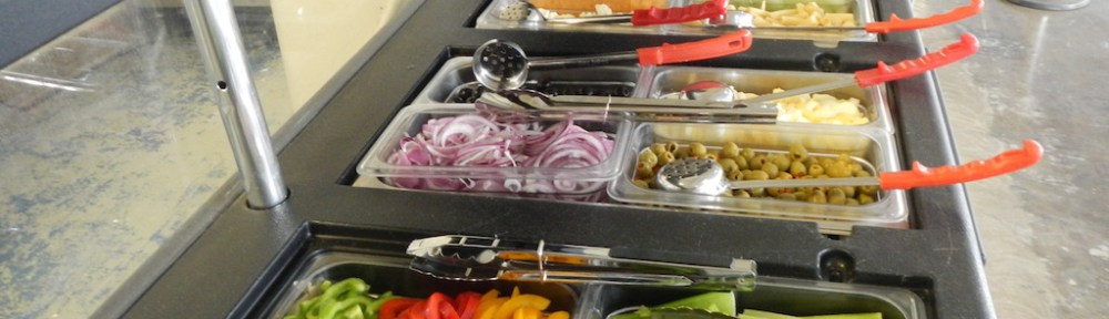In fact, most school food service programs – elementary through high school – offer multiple lunch entrées as well as different fruit and vegetable side dishes. Students often have a vegetarian choice as well as beef/pork and chicken/turkey – in addition to grad-n-go prepared salads and sandwiches. Savvy school nutrition operators know that their customers, especially teenagers, like choices – and they go to great lengths to provide them. The real trend in high schools is customization – just like teens get to have a quick-serve places like Subway and Pita Pit. Lake Stevens Nutrition Services (WA) is a leader in this style of service, using a wide variety of flavors, ingredients and colors in their ‘Fresh for You’ lines illustrated below. Lucky students who get this every day!! KUDOS to Director Mollie Langum and her staff for offering so many choices!