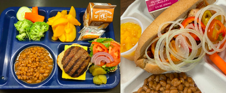 Lunch trays from Decorah Community Schools, Iowa (L) and Philadelphia Public Schools, Pennsylvania