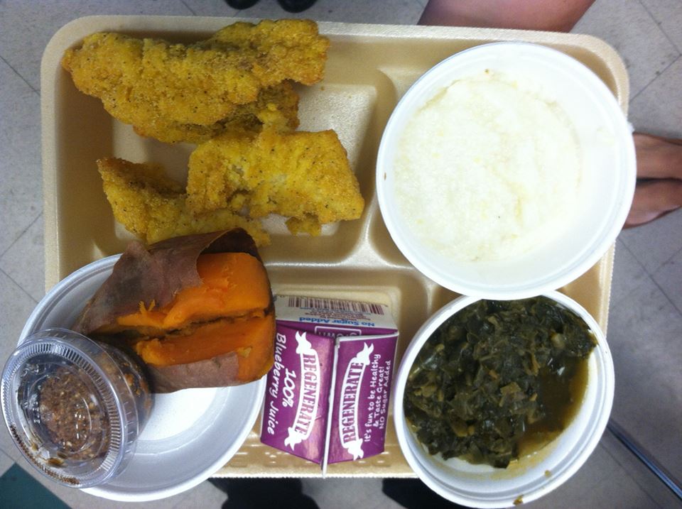 THE GREAT: This photo from Sitka, Alaska, has it all. The blue tray allows the lunch to shine, even though it is not truly colorful. The meal is simple, but obviously good quality, especially when you learn the tacos are made with local fish. The student customer is adorable and clearly enjoying her lunch. There’s good contrast on the tray, nice lighting and the focus is excellent. Thanks to Sitka Conservation Society for sharing the tasty photo and their new Guide to Serving Local Fish in Schools.
