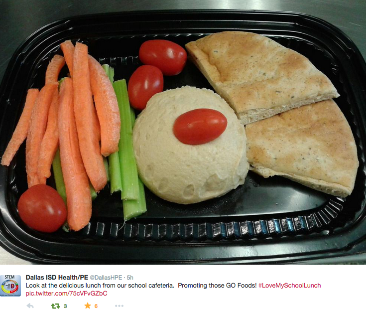 There was also some love for #RealSchoolFood from staff members. This Hummus Plate got a mention from someone in Dallas ISD Health/PE.